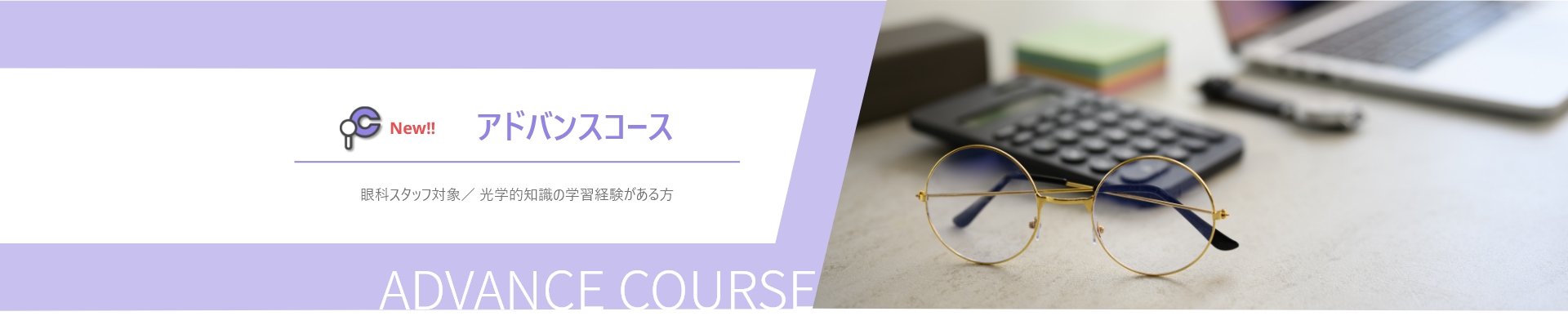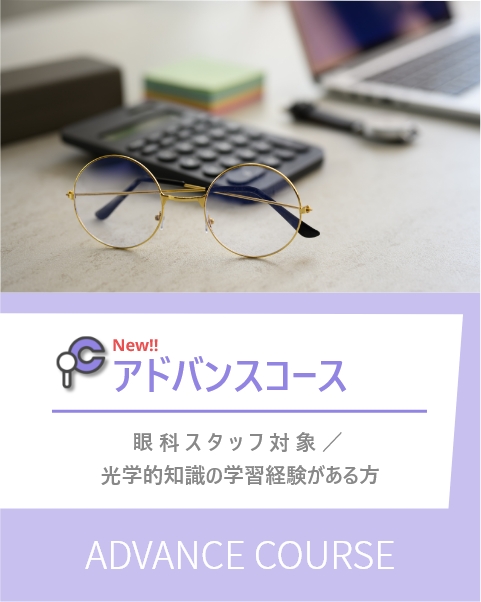 眼鏡店に勤務し、基礎から学びたい方を対象に作成した2026年度新設コースです。眼鏡店業務の経験はあるが、必要な専門知識の学習経験がない方にもおすすめです。※度数転換、スコア表示、眼球の組織、近視、遠視、乱視の定義などの理解が不足していると感じている方には、こちらのコースからの受講をおすすめします。